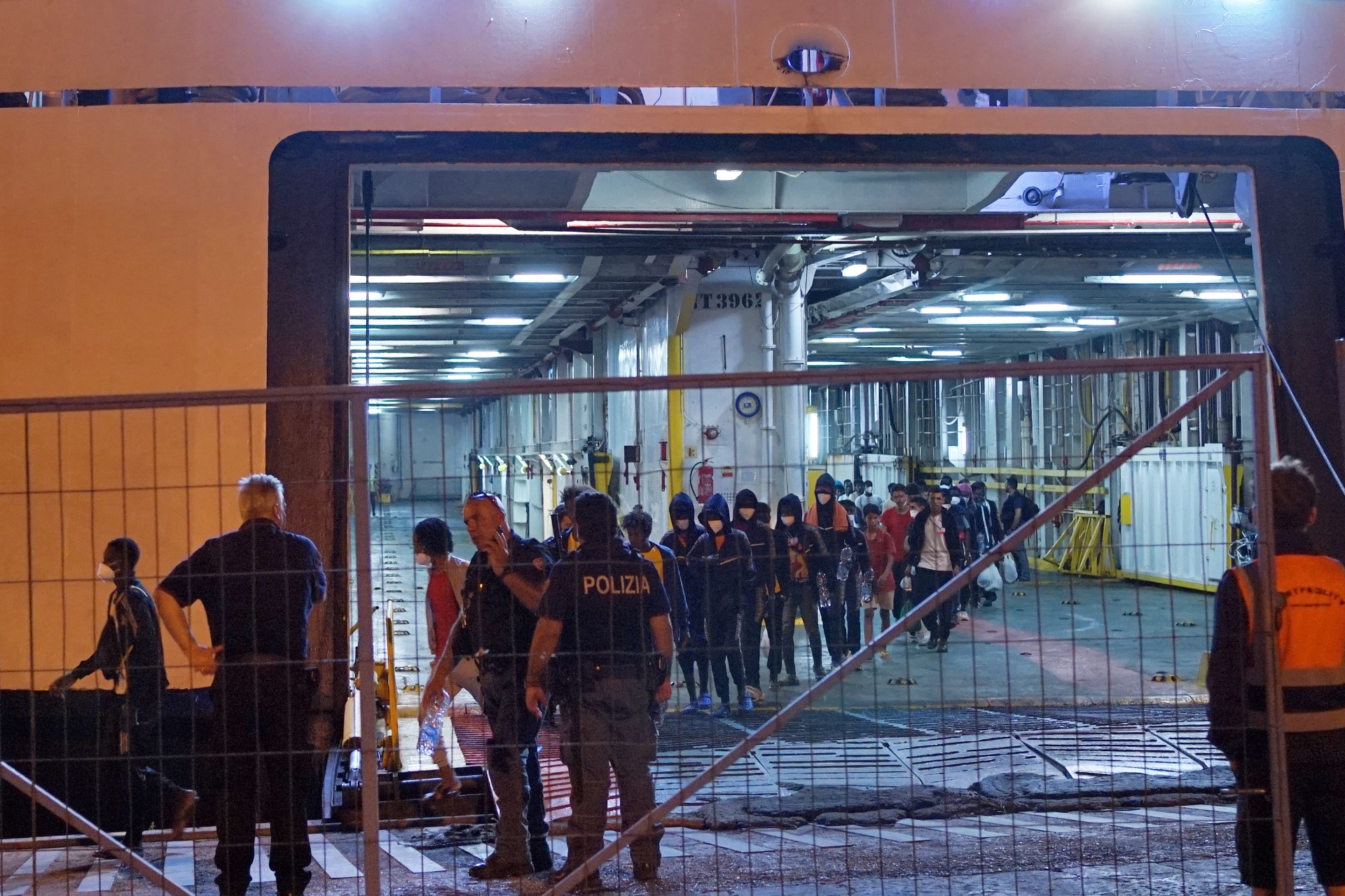 Senza nemmeno un attimo di ristoro, con la polizia che di fatto cordona il percorso tra la nave e la tendopoli, le persone sono chiamate una a una per salire sugli autobus. E' un mediatore della Croce Rossa, l'unico giunto per lo sbarco (insieme solo a un altro di Frontex, rimasto al cancello insieme alla polizia e il cui ruolo rimane, a uno sguardo esterno, poco chiaro), che inizia a chiamare i nomi al megafono. Finita la lista, le persone ricevono un sacchetto con all'interno un panino, una bottiglia d'acqua e uno snack per poi salire sui mezzi messi a disposizione dalla Prefettura di Agrigento per gli ulteriori spostamenti. Le direzioni sono varie: alcune persone vengono portate nei CPR delle varie regioni d'Italia, alcune di nuovo in altri Hotspot (sia in quelli ufficiali, a Pozzallo, Taranto, Trapani e Messina, sia in altre zone "adibite" al controllo e trattenimento per l'identificazione, improvvisate per rispondere alla congestione degli altri centri, come sarà a Porto Empedocle stessa), altre in "Hub" dove le persone vengono "collocate", autorizzate a uscirne, in attesa di trovare loro posto altrove (come nell'Hub di Catania, ricavato da un ex polo vaccinale per il Covid), altre direttamente nei CAS/ex CARA in tutta Italia, in alcuni casi con più di dieci ore di viaggio!